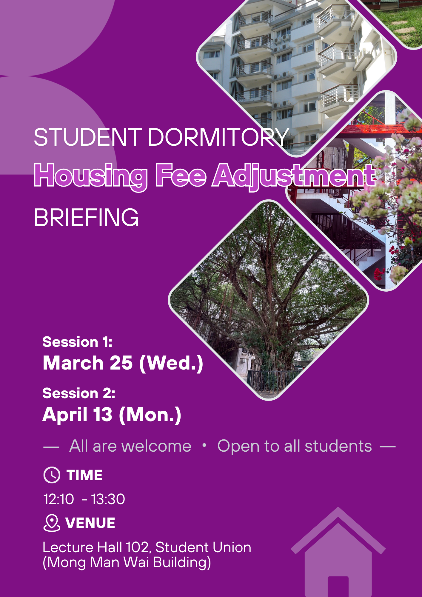 Time: 12:10–13:30 Venue: Lecture Hall 102, Student Union (Mong Man Wai Building)